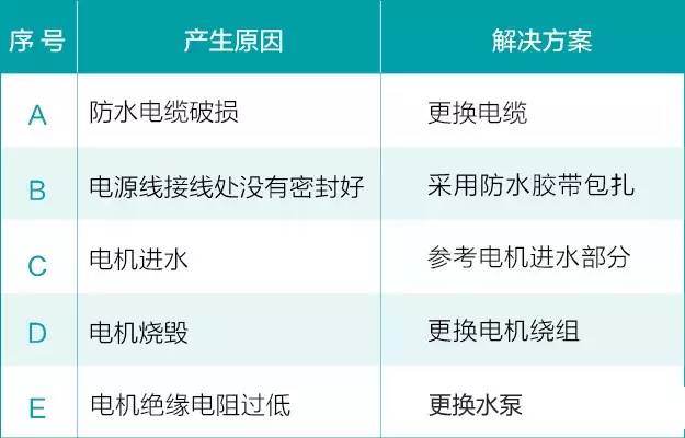 3、水泵电机 进水漏电;